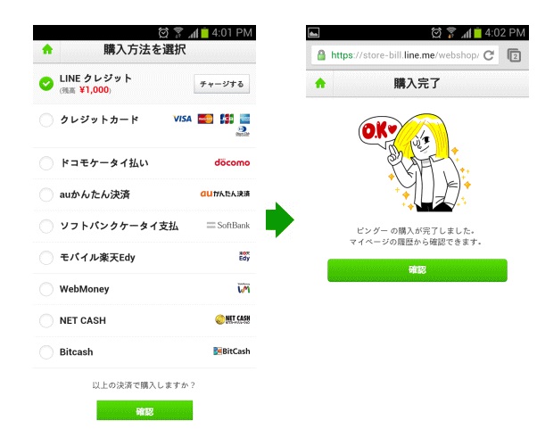 有料スタンプや仮想通貨のLINEコインを購入出来るようになりました。